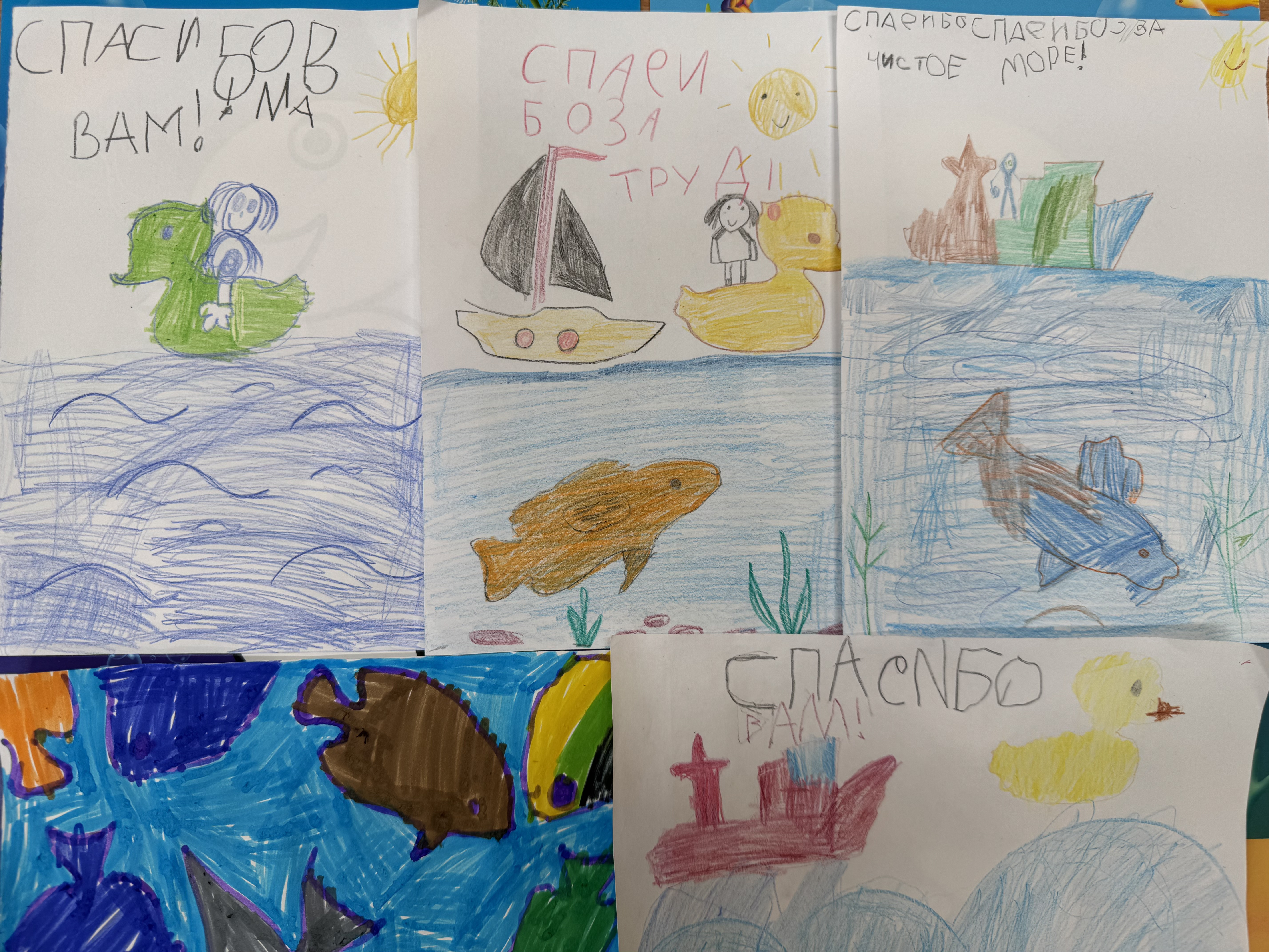 Уже больше месяца сотни волонтеров трудятся на побережье Черного моря, очищая берег и спасая птиц и дельфинов. И мы с детьми не остались в стороне. Дошкольники старательно рисовали чистое Черное море, в котором много рыб, птиц и дельфинов. А также выразили свою благодарность волонтёром, которые убирают загрязнение.