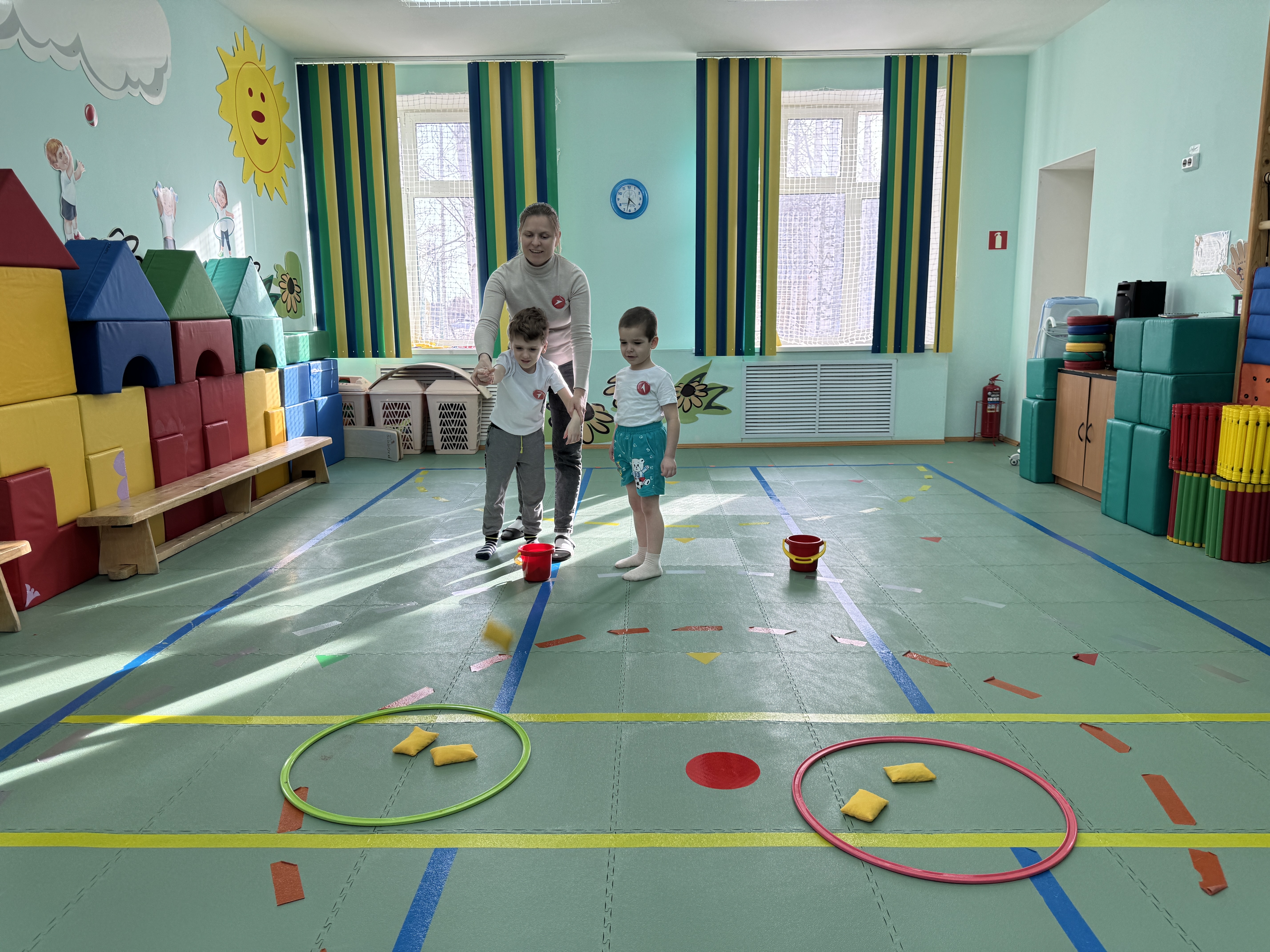 - В группе «Ягодка» воспитанники начали свое мероприятие с «Дорожки здоровья», которая улучшает координацию движений, приобщает детей к здоровому образу жизни; эстафеты «Цветные кубики», «Кто дальше бросит мешочек» способствовали созданию весёлой, задорной атмосферы; игровой самомассаж был направлен развитие мелкой моторики рук, а также расслаблению.