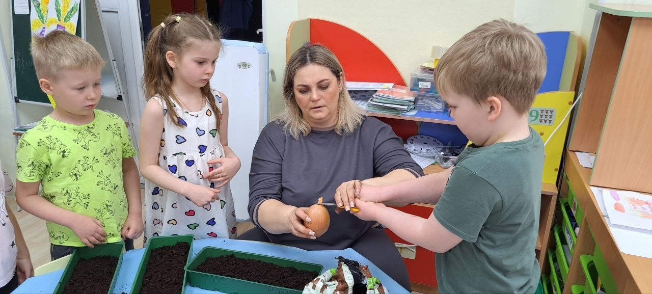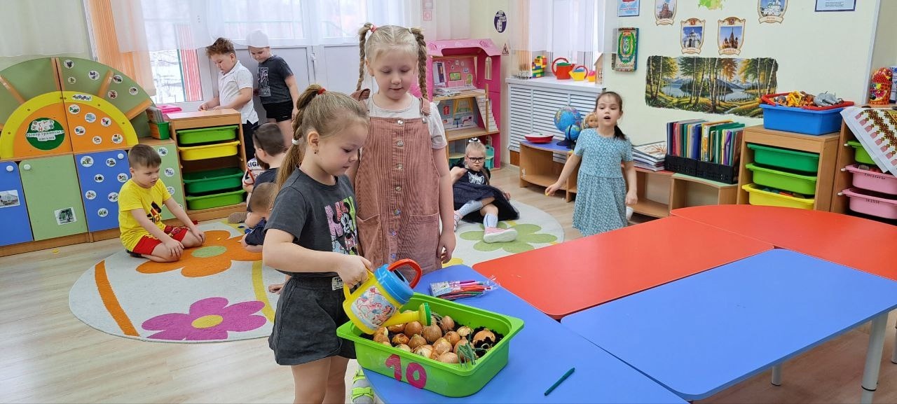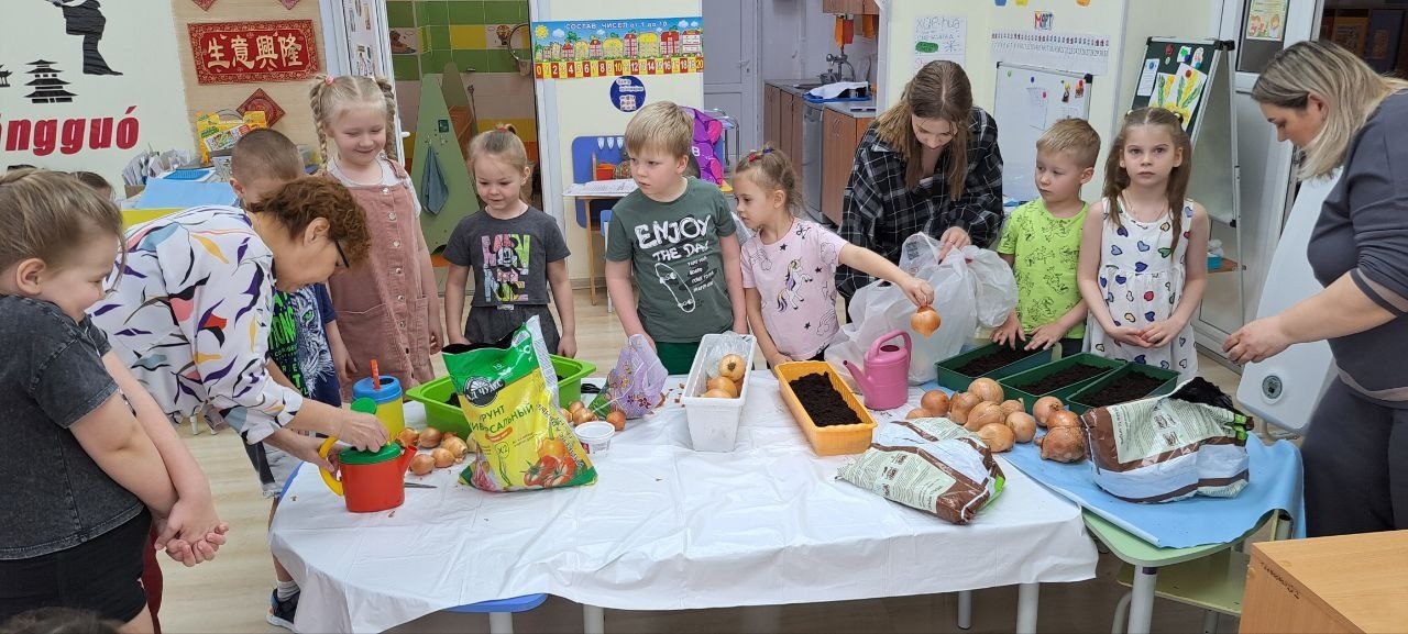 2 апреля дан старт «Луковым гонкам». Группа №9 посадили более крупные луковицы, а дети группа №10 – средние.
