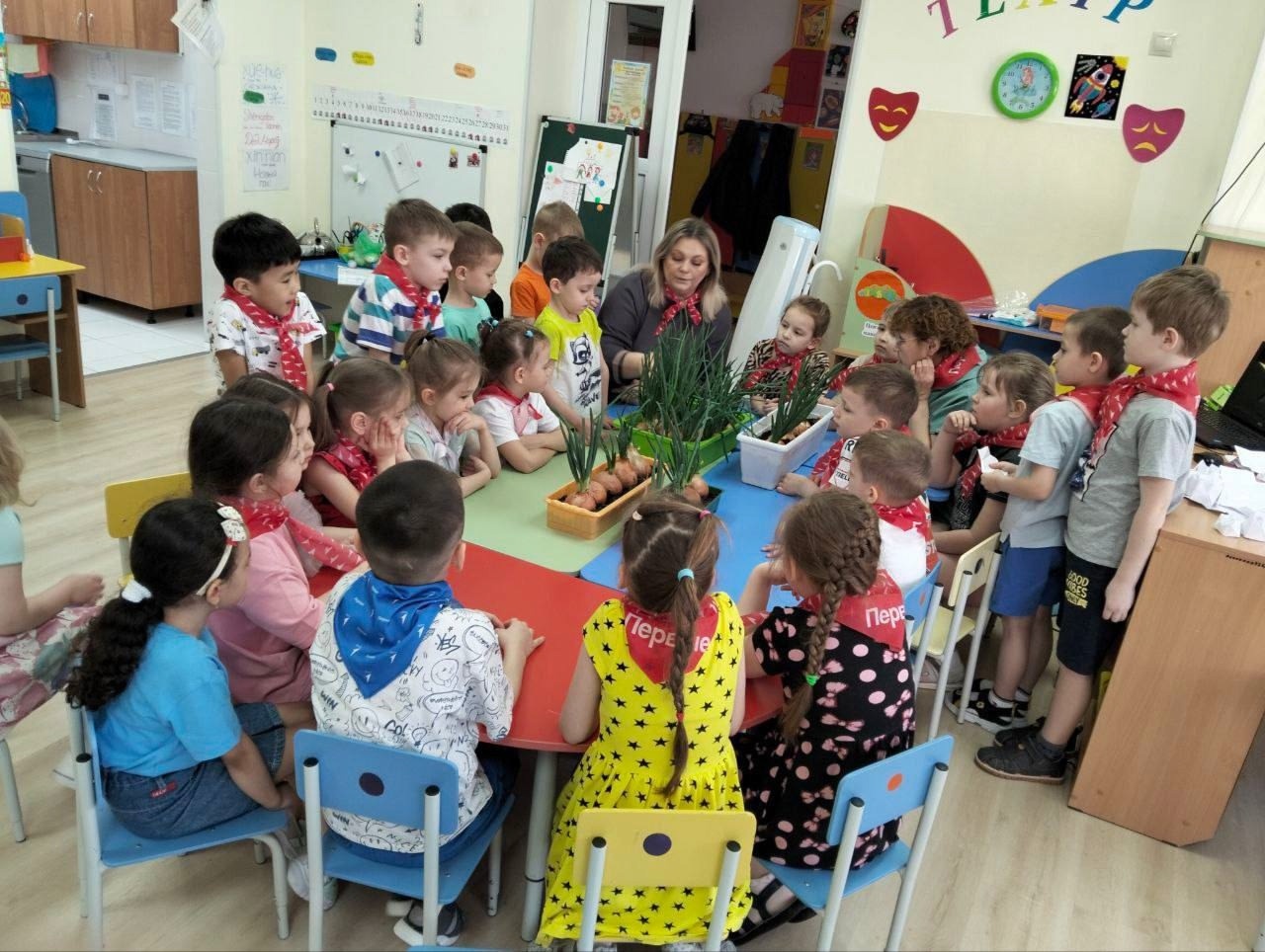 На протяжении трех недель ребята наблюдали за лукавицами. Каждый день дети следили за своими посадками, луковицы все росли и росли, не по дням, а по часам. Заботливые руки наших юных садоводов каждое утро поливали их, наблюдали, как они тянутся к солнцу.