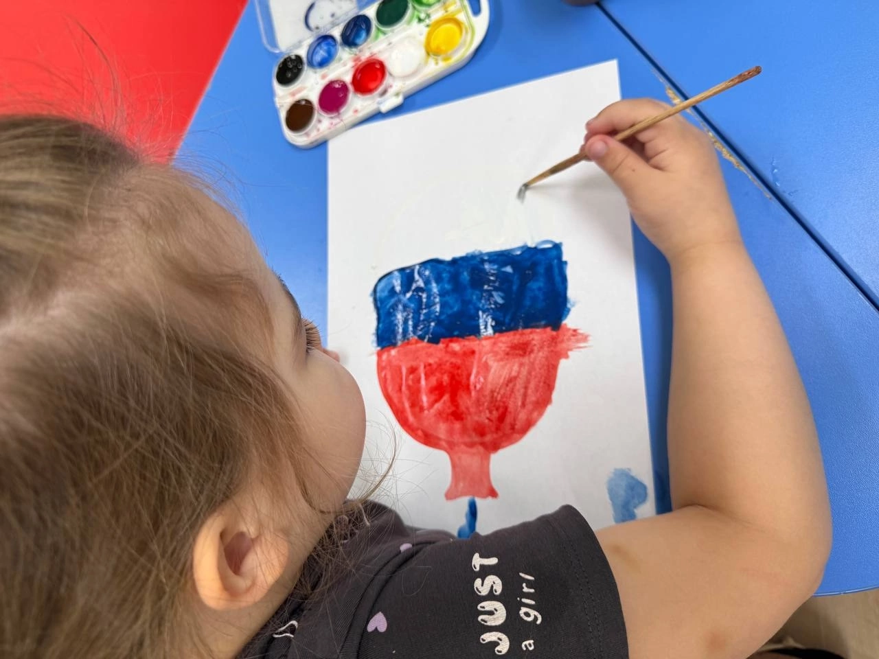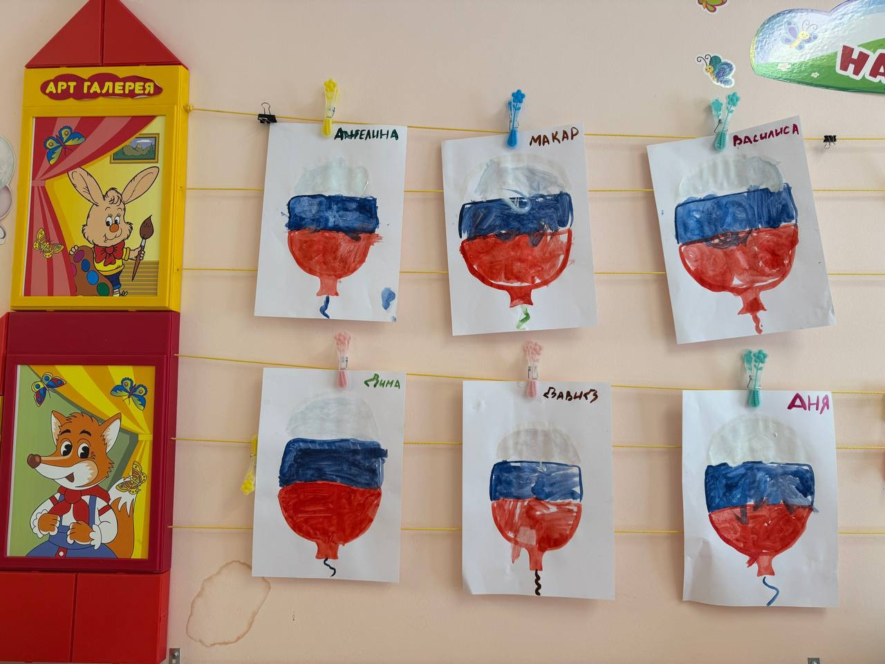 Группа «Букварёнок» нарисовали воздушные шары, используя цвета: белый, синий, красный.