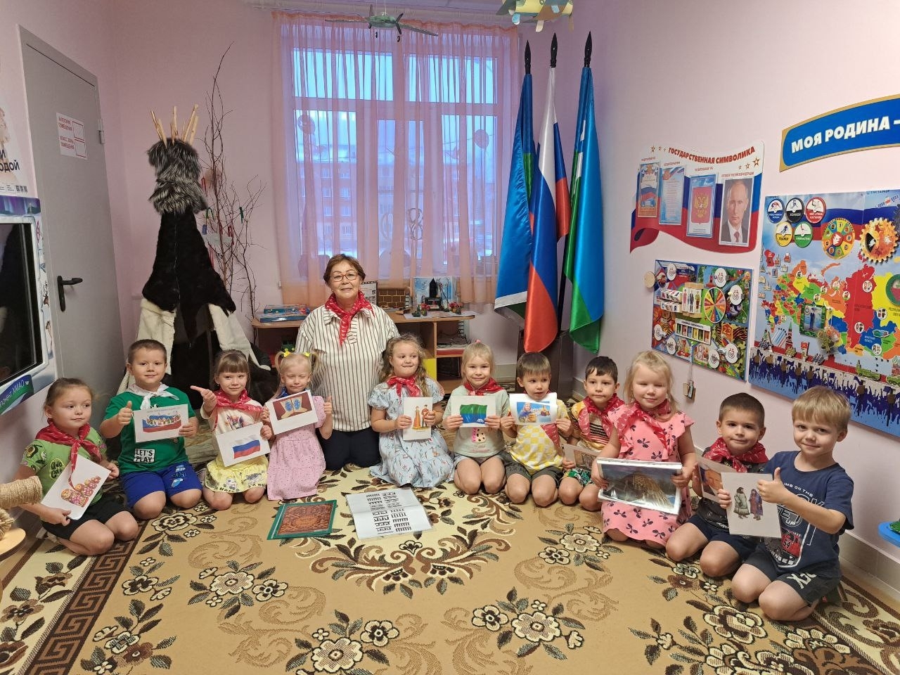 Мероприятие, посвященное Дню народного единства в группе «Фантазеры» начали с увлекательного знакомства с культурой народов ханты и манси. Дети с интересом рассматривали альбомы с изображениями традиционных обрядов, одежды и быта этих народов. Это позволило им лучше понять их уникальные традиции и обычаи. После познавательной части были организованы весёлые и активные игры. Дети с удовольствием прыжками преодолевали «нарты», поиграли в бросание «танзяна» на «хорей» — это была не только игра, но и возможность проявить ловкость и командный дух! В завершении мероприятия ребята сделали коллективную работу поздравительную плакат-открытку.