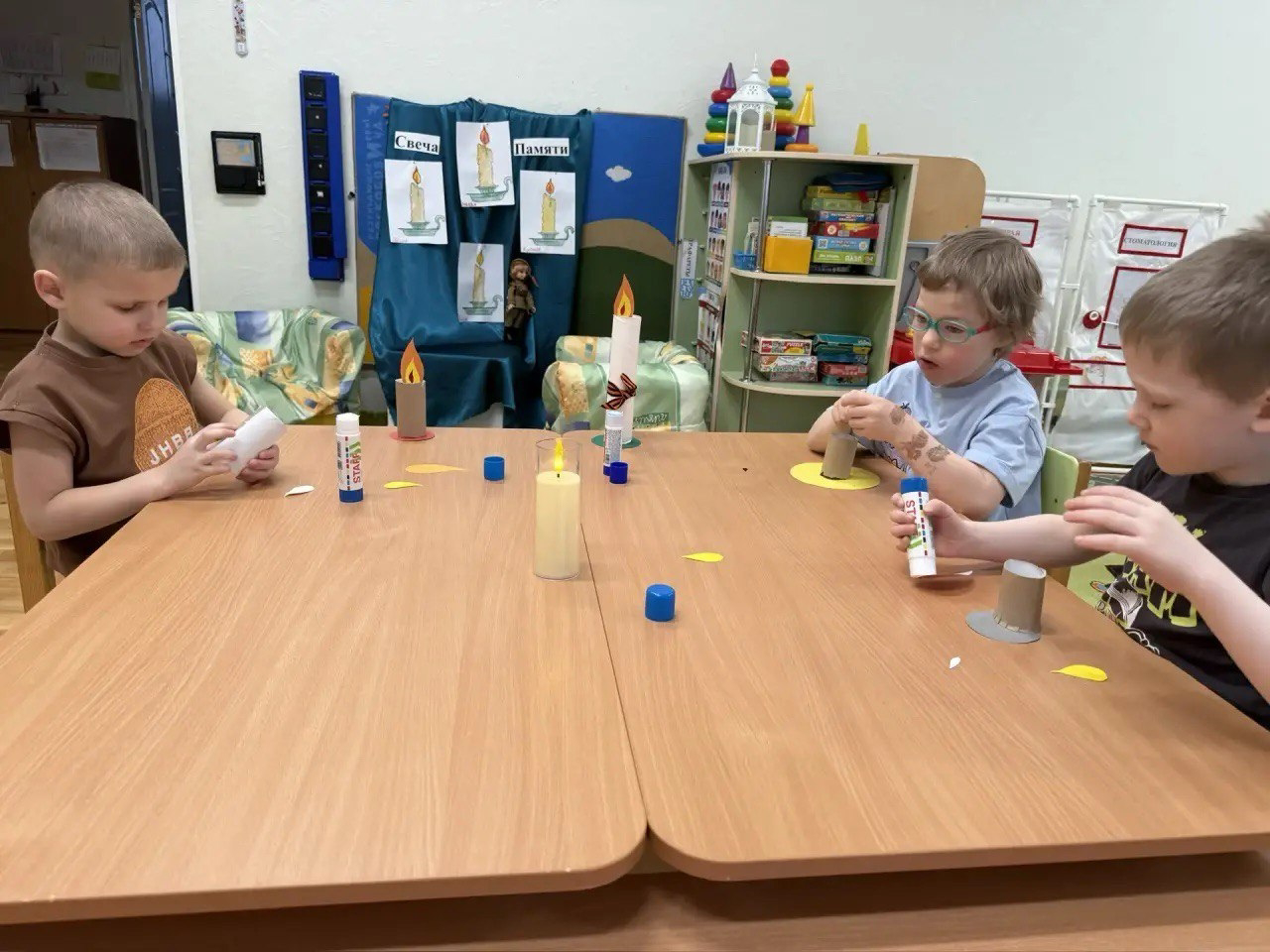 В группе «Незнайка» воспитанники нарисовали «Свечу памяти» и изготовили «Свечу» из бумаги своими руками. Пусть эта свеча станет символом вечной благодарности и гордости за героев, подаривших нам мирное небо над головой. Дети и родители почтили память Героев блокадного Ленинграда минутой молчания