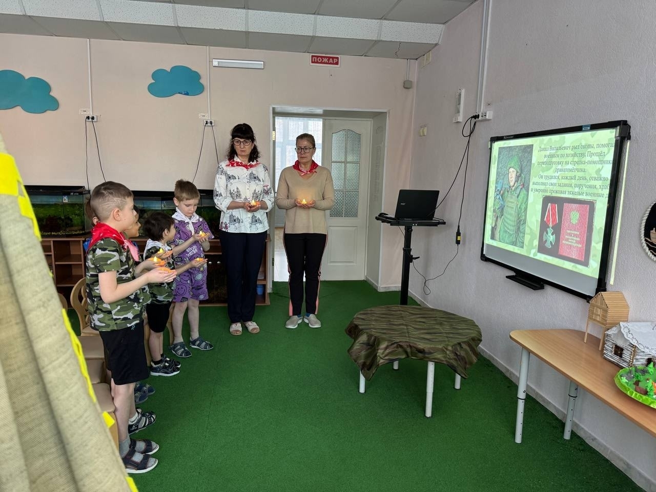 Дети и наставники почтили память участников специальной военной операции минутой молчания. Воспитанники возложили свечи.
