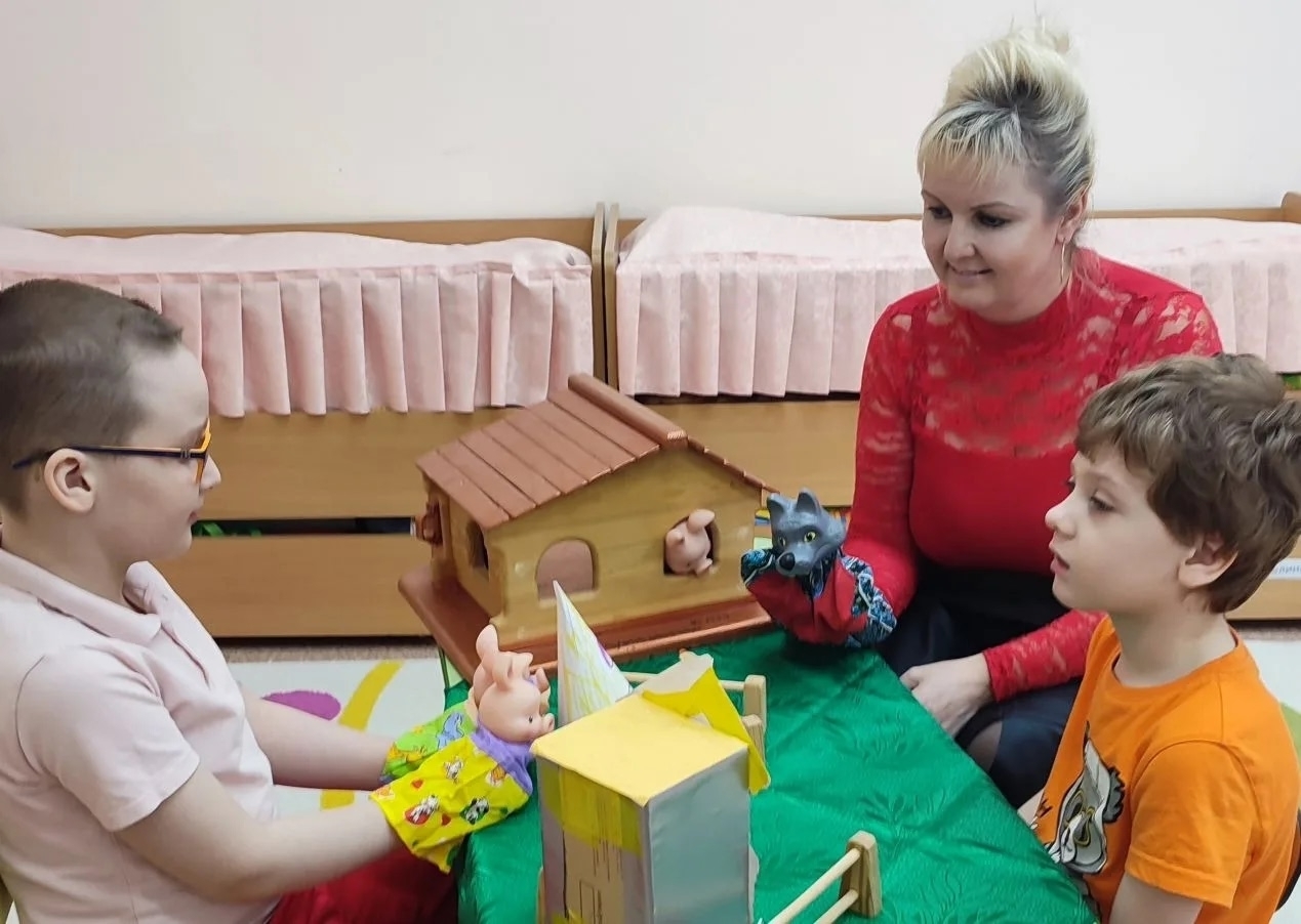 Воспитанники группы «Ягодка» с огромным удовольствием приняли участие в театрализованной сказке «Три поросёнка». Дети с помощью кукол Би-Ба-Бо активно проиграли роли поросят.
