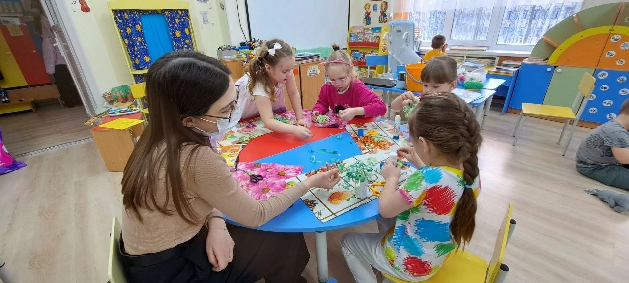 А «Веснушки» решили устроить свой настоящий театр. Дети с увлечением рассказывали друг другу интересные истории. Воспитанники с удовольствием сделали красивую аппликацию на театральную тему.
